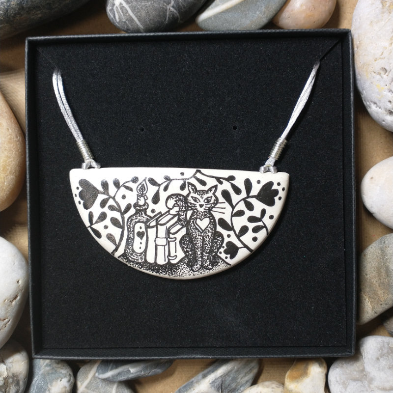 I make whimsical, hand illustrated jewellery that celebrates nature, folk lore and the Cornish landscape. Every piece has a story behind it. Some are traditional tales, some are as simple as a conversation with a friend or someone who has had a chat with me at a market.