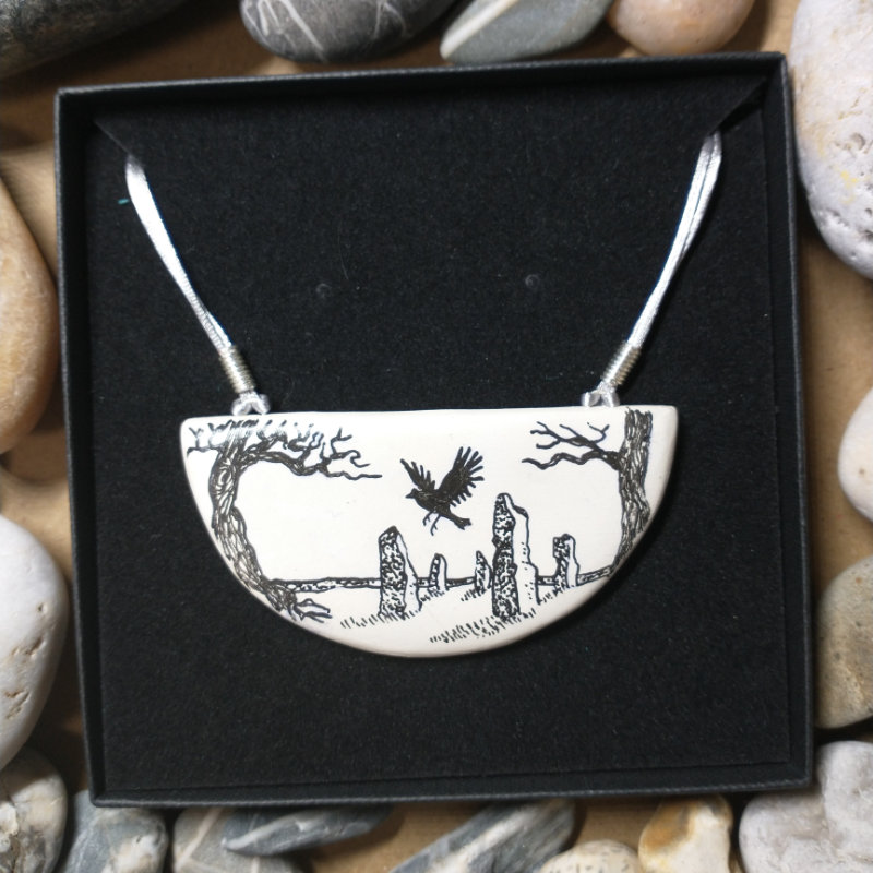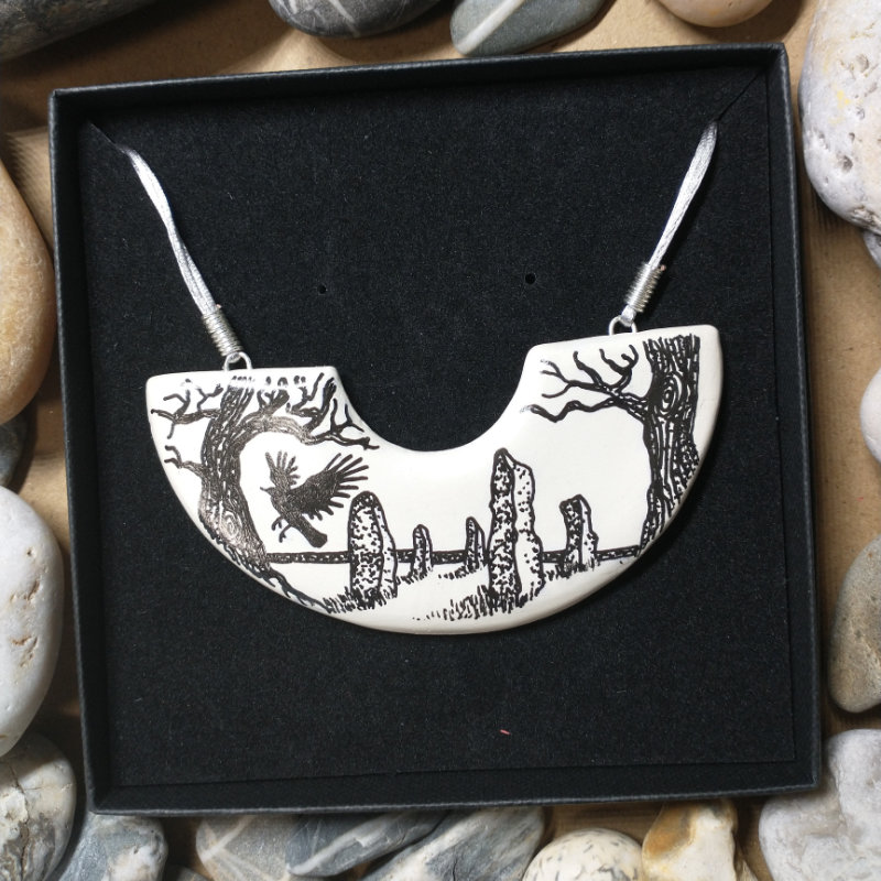 I sell at local events in Cornwall and via mail order. Gorget necklaces are added to my Etsy shop every time I produce a new collection. Pebble pendants, keyrings and pin badges are available at events. If there is something specific you are looking for give me a shout. I will happily look to see what I have in stock to post out.