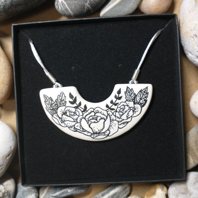 Each design is hand drawn, no two are ever identical. Pendants are stamped on the back with my maker’s mark and dated with the month & year of creation. Your own unique work of art!
