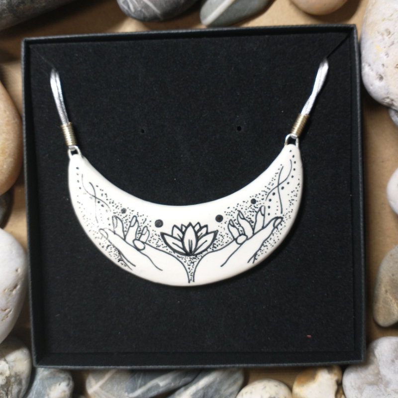 A statement about your interests to help you find your tribe, or worn to remind yourself of your heart’s true path. A totem to protect your throat, to strengthen communication, self-expression and speaking your personal truth.