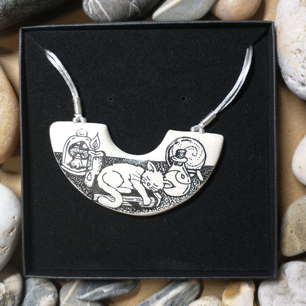 I’m a big fan of cats and currently forever foster three black boys for the Cinnamon Trust. They were bereaved in early 2024 and it has been an honour to be able to offer them a loving home to feel safe in. Cat has long been associated with independence, mystery and protection. Held sacred in Egyptian culture they were often mummified with their owners to protect them in their journey to the afterlife.